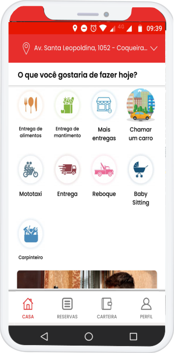 Escolha o serviço Escolha o serviço que deseja disponibilizar e reserve o mesmo efetuando o pagamento escolhendo entre as modalidades, como dinheiro, cartão ou carteira